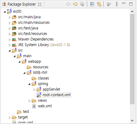 프로젝트의 src 폴더 내에 'root-context.xml'은 스프링 프레임워크에서 관리해야 하는 객체(Bean)를 설정하는 설정 파일이다.