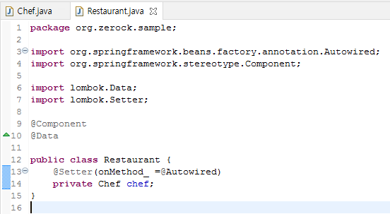 @Setter에서 사용된 onMethod 속성은 생성되는 setChef()에 @Autowired 어노테이션을 추가하도록 한다.