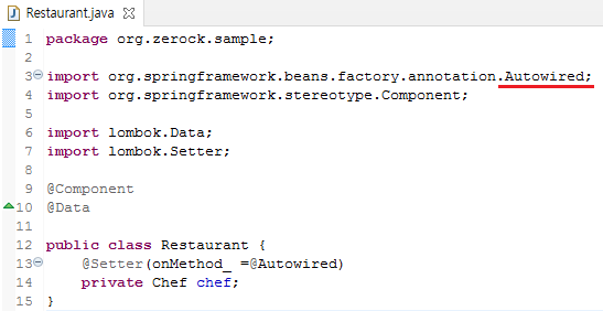 -> Restaurant 클래스를 조사해 보면 오른쪽과 같이 @Setter 메서드가 작성된 것을 볼 수 있음.