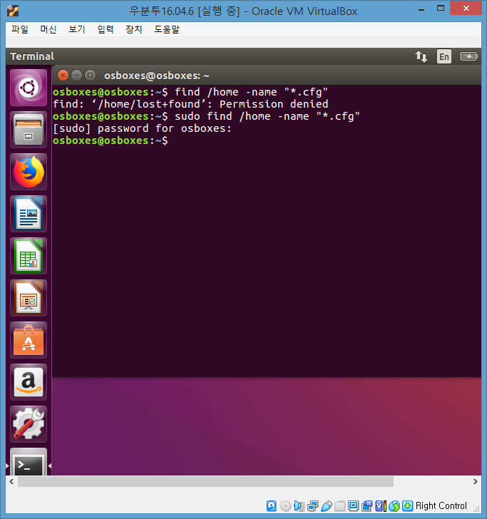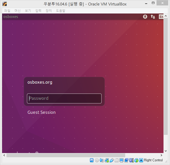 우분투가 실행되면 아래와 같이 창이 뜬다. (암호는 osboxes.org)
