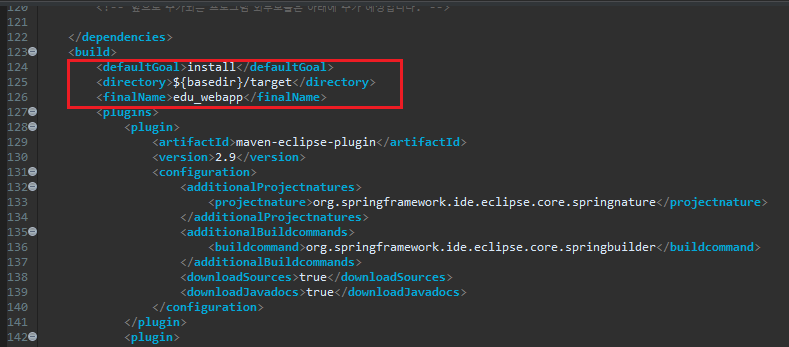 - pom.xml 파일에서 아래와 같이 코드를 추가한다. ( 그 후, 프로젝트 refresh)