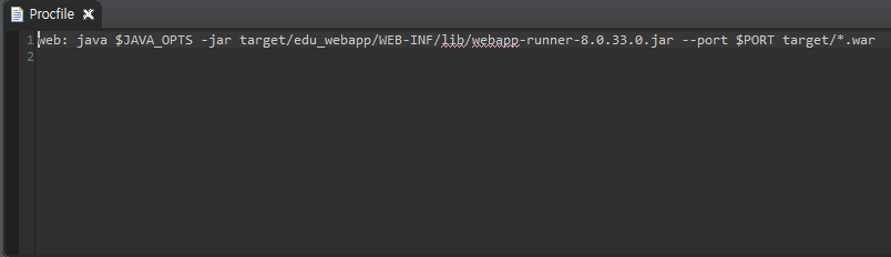 헤로쿠 클라우듣 설정 파일을 작성한다. - 파일이름 : Procfile (확장자 없음), 파일 내용 : 아래와 같다.