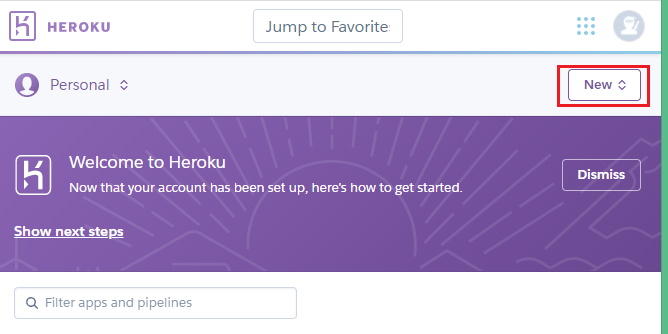 - 일단 헤로쿠 클라우드에서 New app을 프로젝트 이름과 동일하게 만든다.
