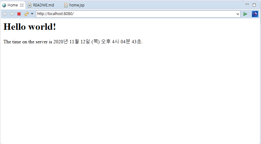 Hello world 나오는지 확인한다.