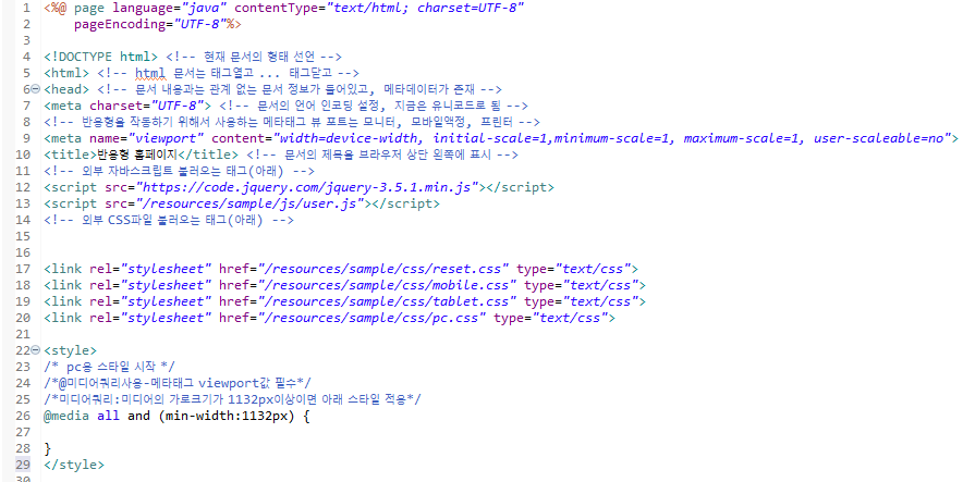 - 반응형 웹페이지 작업 결과를 스프링MVC 프로젝트에서 home.jsp로 변환