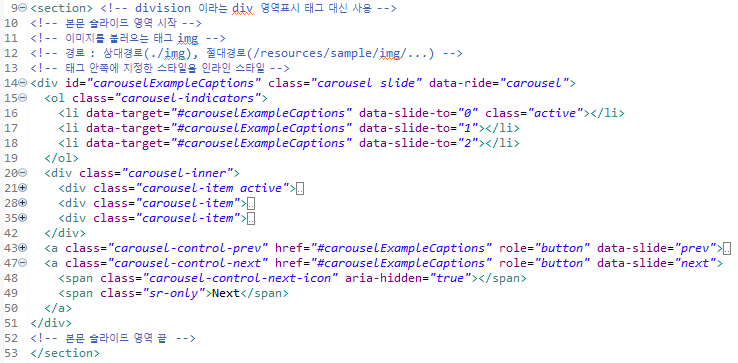 - index.html의 section영역을 복사한 후, index.jsp에 붙여넣는다.