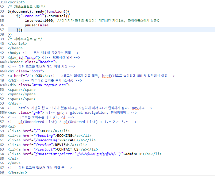 - index.html 파일에서 header 부분을 복사한 후, header.jsp에 붙여넣는다.
