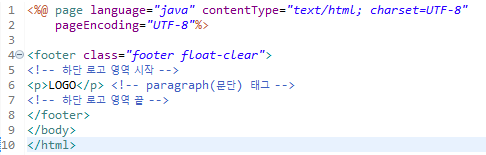 - index.html파일에서 footer부분을 복사한 후, footer.jsp에 붙여넣는다.