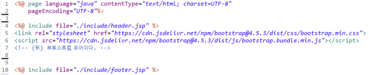 - index.jsp에 header.jsp와 footer.jsp를 추가한다.