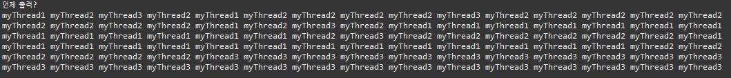 - 스레드는 실행되는데에 순서가 없다는 것을 보여주는 예시