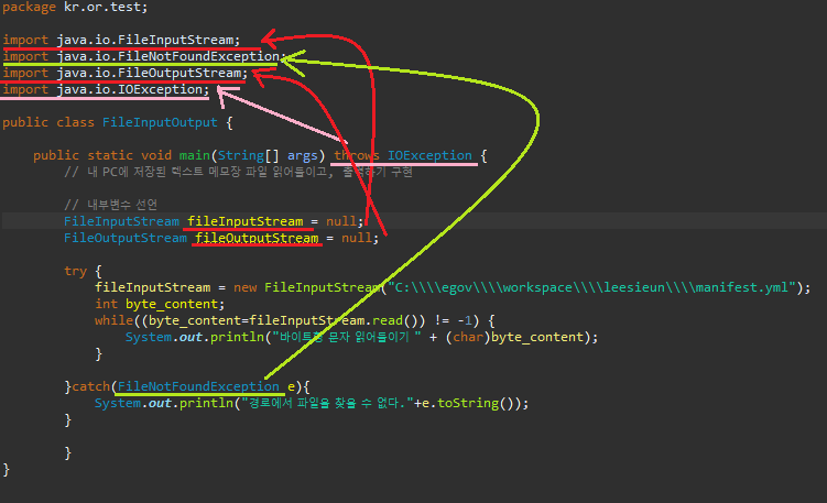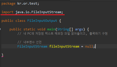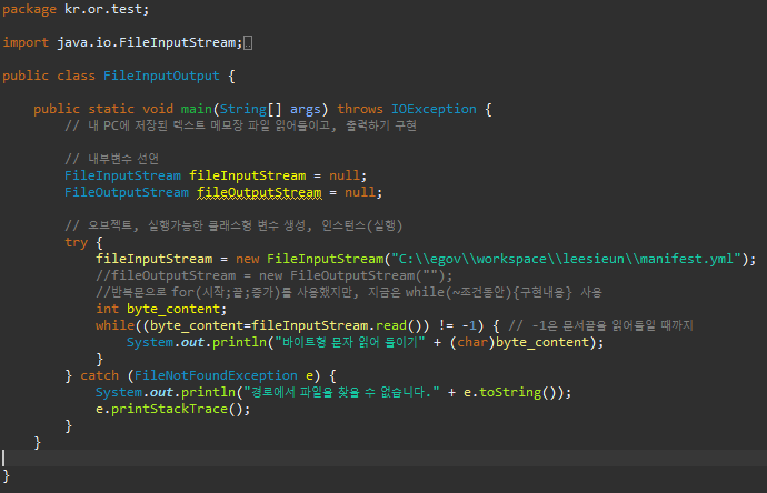 - 파일로부터의 입력(FileInputStream)