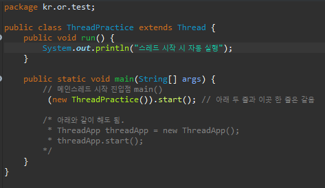- Thread 클래스는 통신 프로그램에서 사용한다. ex) 안드로이드 앱
