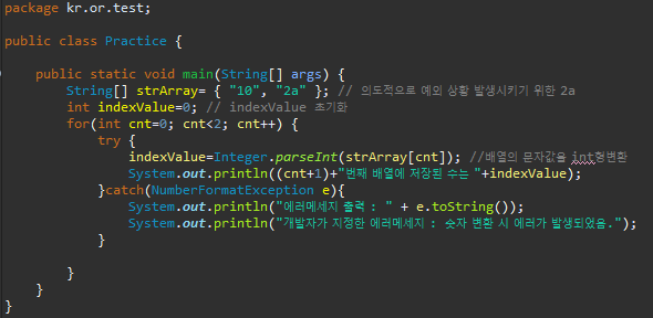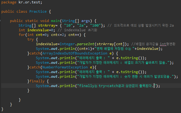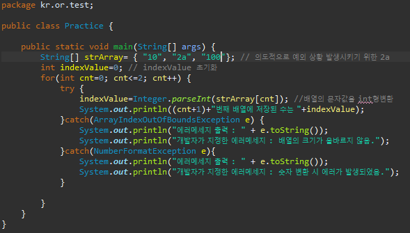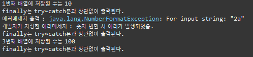 - 예외처리를 하면 종료가 되지 않는 것을 보여주는 예시