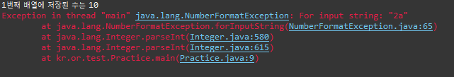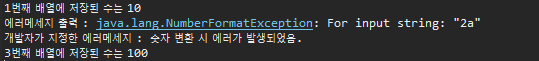 -> 에러 발생했지만, 3번째 배열에 저장된 수 100 출력