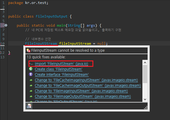 - 아래와 같이 오류 메시지가 나오면 import를 해준다.