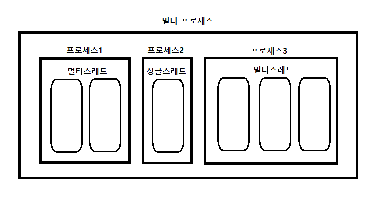 - 멀티 프로세스 : 애플리케이션 단위의 멀티 태스킹